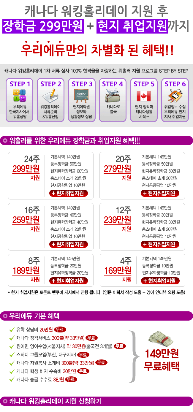 캐나다 워킹홀리데이 장학금 + 취업지원 안내